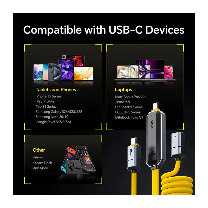 AOHi Future Magflash 2 في 1 شحنتخزين بيانات كابل 240W / يو اس بي/ 1000MB/s / أصفر