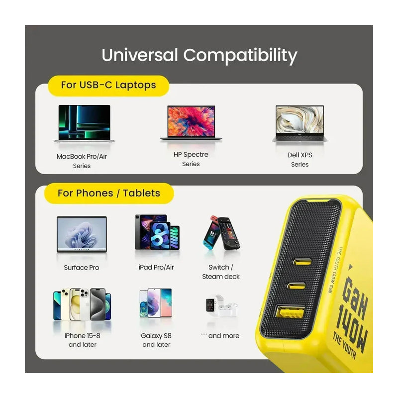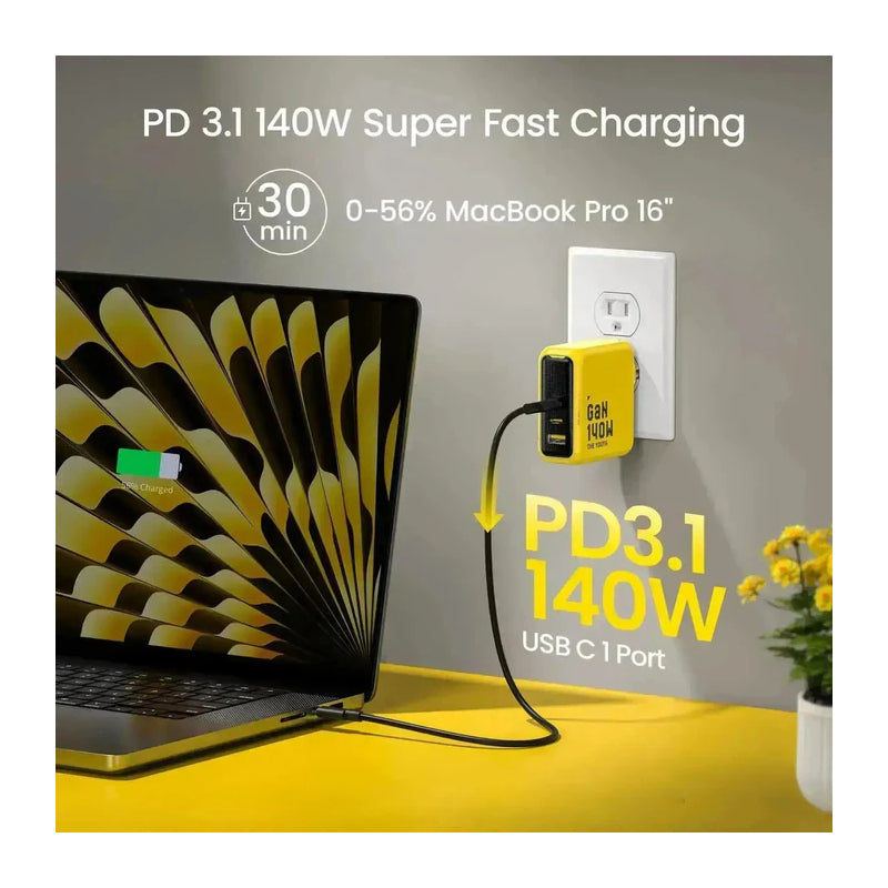 AOHi Youth GaNمنفذ سريع شاحن 140W / يو اس بي/ يو اس بي/ أصفر
