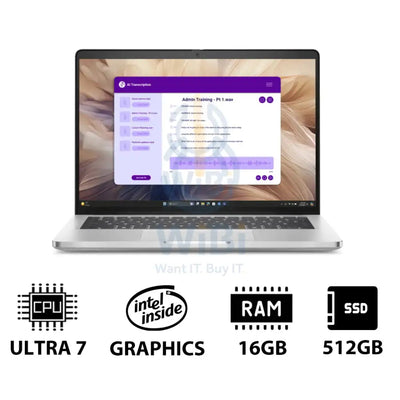 | Processor | Intel® Core™ Ultra 7 255U P-Core 2.00GHz, E-Core 1.70GHz 12M Cache ((2P + 8E + 2LPE) 12-Cores, Up to P-Core 5.20GHz, E-Core 4.20GHz) Processor |