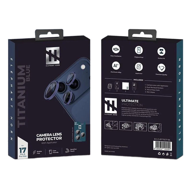 واقي قرن الفيل كاميرا عدسة كاميرا عدسة مع قضيب حامي لـ ابل ايفون 17 برو برو ماكس - أزرق تيتانيوم