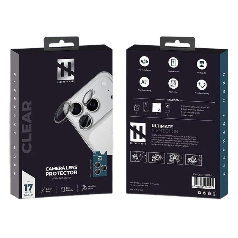 واقي قرون الفيل كاميرا عدسة كاميرا عدسة مع قضيب حامي لـ ابل ايفون 17 برو برو ماكس - شفاف