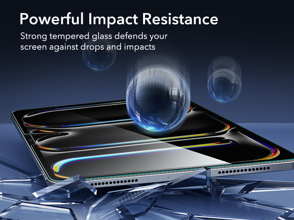 Quick and Easy Application: included application tray takes the guesswork out of installation to ensure quick and easy bubble-free application every time. Serious Protection: tough glass, tempered to the highest hardness rating, ensures your screen stays protected against scratches and cracks caused by drops, keys, or cables. Clear and Responsive: ultra-thin, ultra-transparent 0.3-mm glass ensures a flawless display and responsive touchscreen with a cutout for the camera that guarantees pixel-perfect FaceTime; full Pencil support