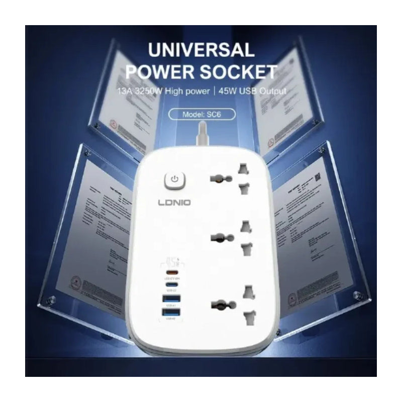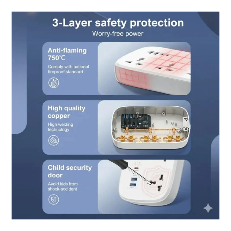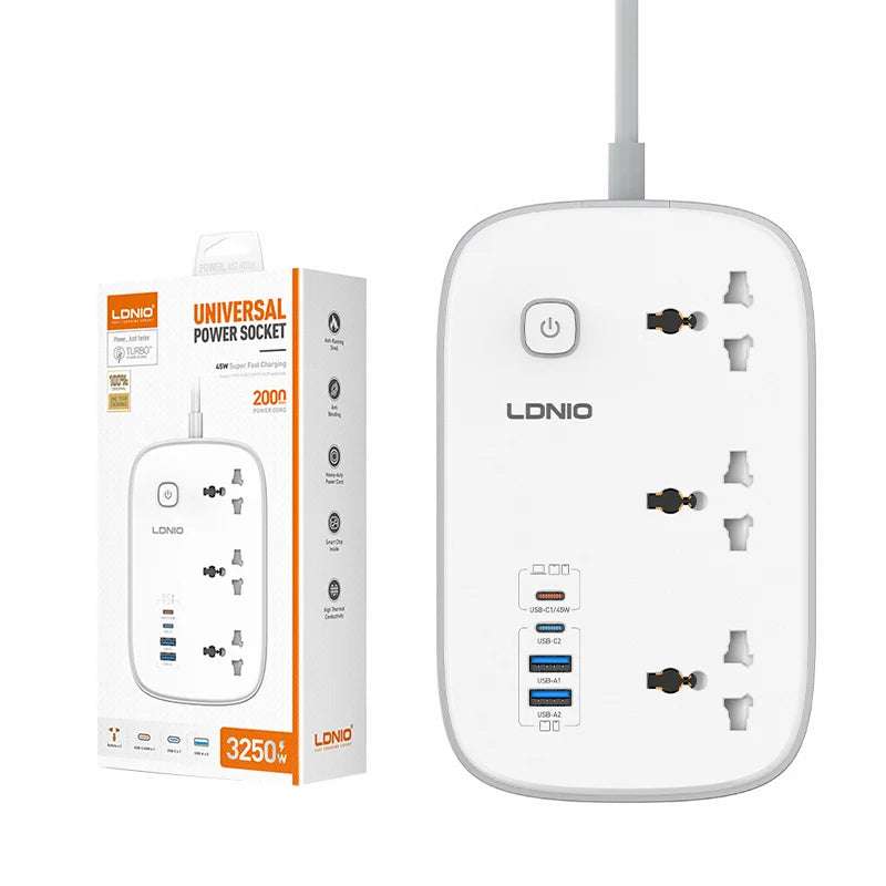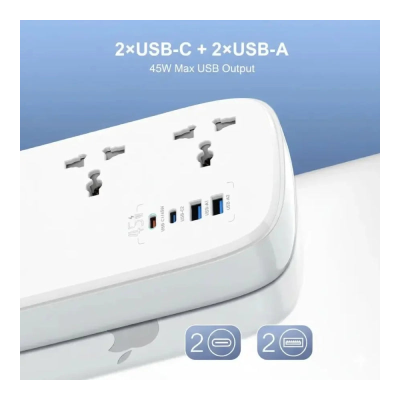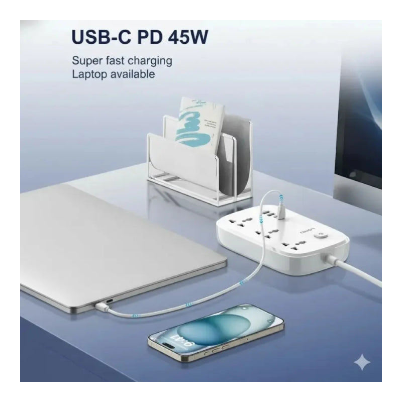 موسع طاقة لدنيو مقبس سلك طاقة مقبس ثلاثي / يو اس بي/ يو اس بي/ أبيض