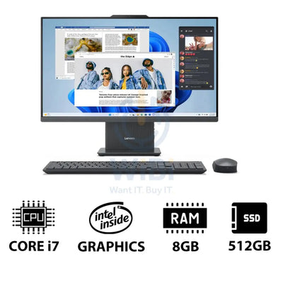 لينوفو إيديا سنتر 3 المتكامل جهاز كمبيوتر - آي 7 / 64 جيجابايت / 1 تيرابايت (NVMe م 2 إس إس دي) / 27.0" FHD لا تعمل باللمس / 2 جيجابايت في جي إيه / دوس (بدون نظام تشغيل) / ضمان سنة أسود - كمبيوتر مكتبي