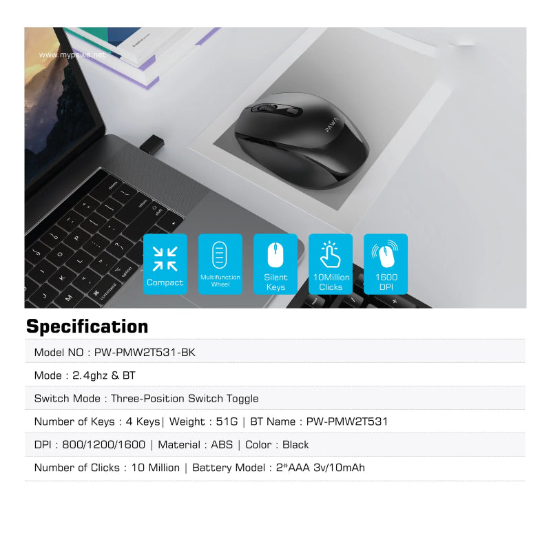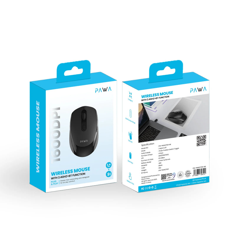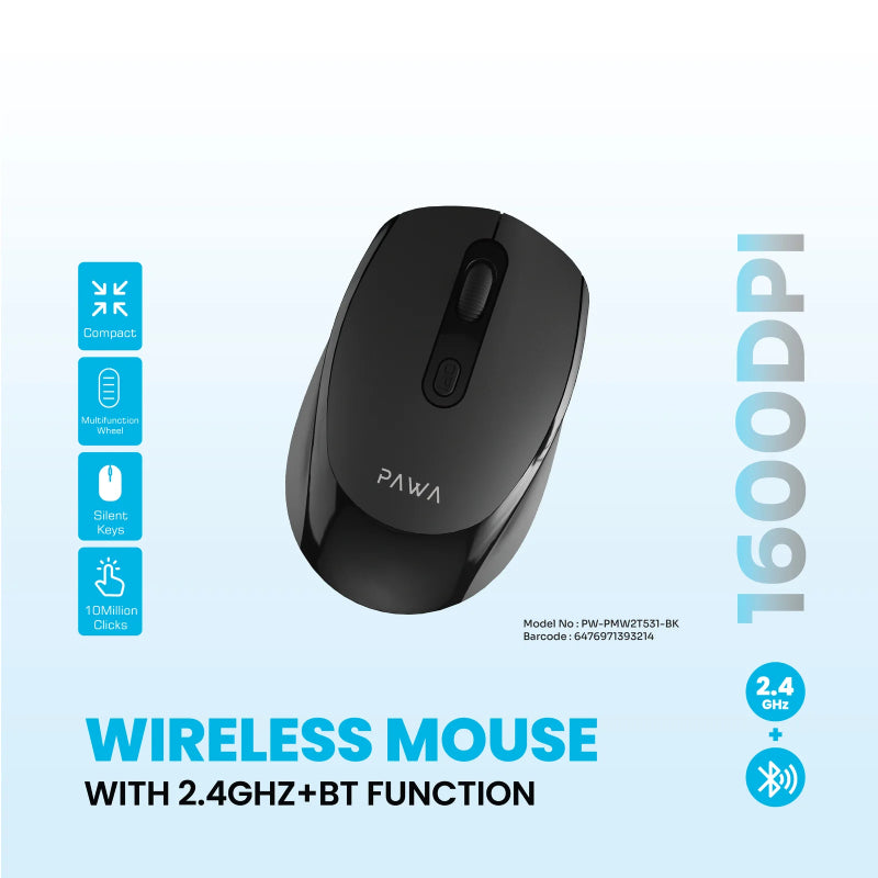 ماوس لاسلكي ماوس 1600 نقطة في البوصة بلوتوث 2.4 جيجاهرتز / أسود