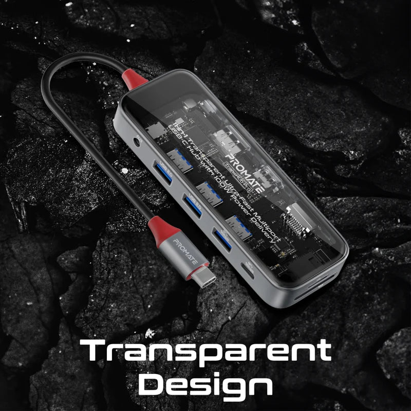 موزع PROMATE 11 في 1 شفاف يو اس بي موزع يو اس بي/ إتش دي إم أي يو اس بي .0