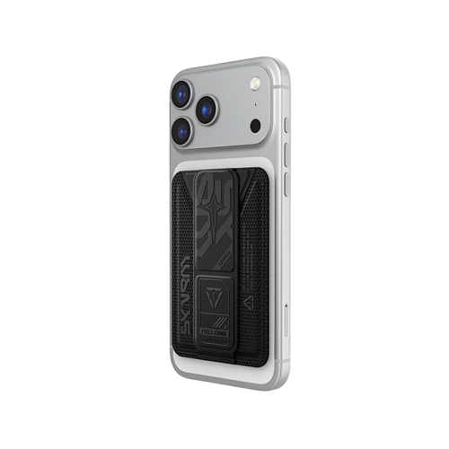 Magnetic card holder with a built-in grip stand for everyday convenience, PHANTOM-style. Carry your essentials, hold your device comfortably, and switch between portrait and landscape viewing with ease.