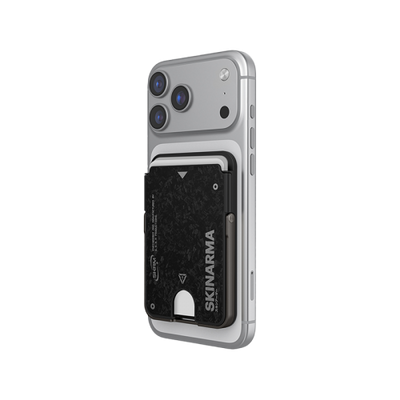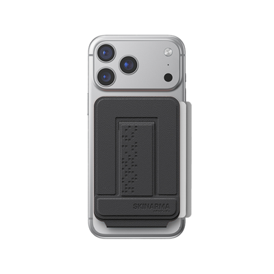 Magnetic card holder with a built-in grip stand for everyday convenience, PHANTOM-style. Carry your essentials, hold your device comfortably, and switch between portrait and landscape viewing with ease. Features:- - Secure magnetic attachment - Integrated grip-stand - Supports both portrait and landscape viewing
