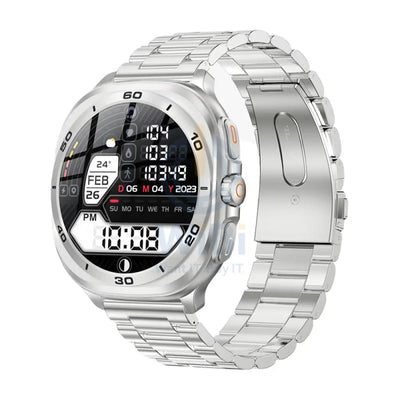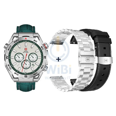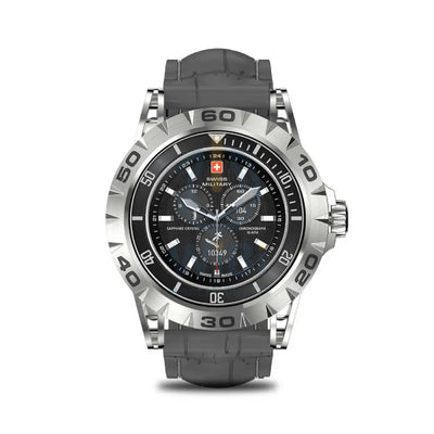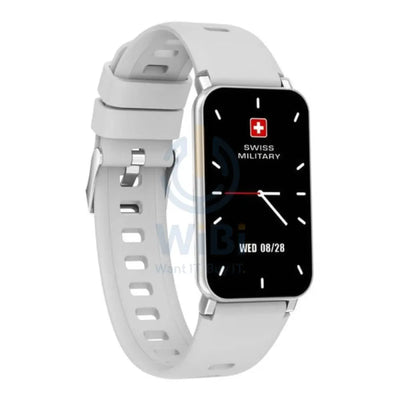 Swiss Military Dom 2 Smart Watch - Silver Frame Gray Silicon Strap with Swiss Military Delta Earbud - White