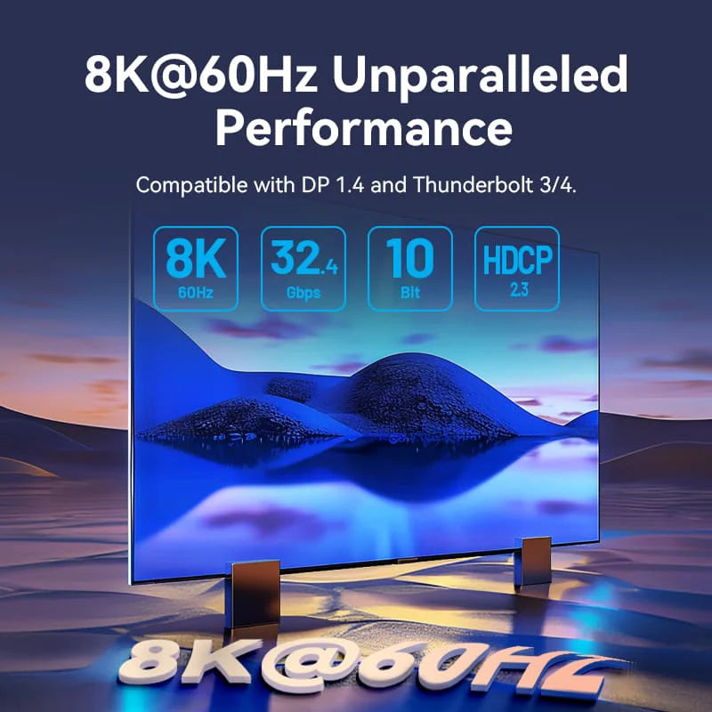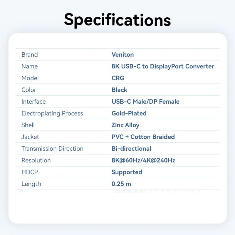 Vention Cotton Braided يو اس بي إلى منفذ العرض محول 8K / 0.25 متر أسود